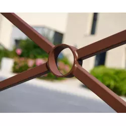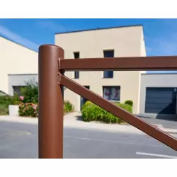 Barrière de ville avec cadre simple croix en acier peint, disposant de pommeaux bombés, disponible en 2 longueurs et 10 coloris. Barrière de ville de fabrication française.