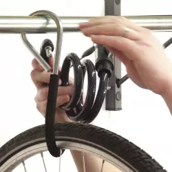 Le crochet à vélo gainé est équipé d’une mousse haute protection pour protéger les jantes de pneus, l’anneau permet de mettre un antivol en U ou câble