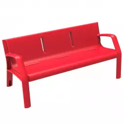Banc public en polyéthylène 100% recyclable, disponible en 9 coloris. Un panache de couleur est possible pour créer une ambiance colorée et chaleureuse dans les cours d'écoles ou les jardins publics.