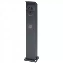 Cendrier extérieur sur pied munie d'un insert pour les cendres et mégots et un insert pour les déchets. Ce cendrier extérieur est conçu pour équiper les espaces publics.