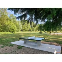 Table de ping pong en béton, plateau coloris vert et filet en béton blanc. Cette table de ping pong béton résiste parfaitement aux intempéries. Spécialement conçue pour équiper les cours de récréations et lieux publics. Notre table de ping pong béton verte est livrée avec un jeu de raquettes.