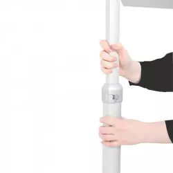Ce porte-affiche dispose d'un pied télescopique à hauteur réglable de 90 à 127 cm. Il est disponible en deux dimensions d'affichage, modèle A4 et modèle A3.