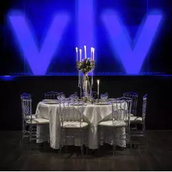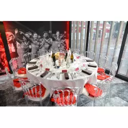 Cette chaise de réception en polycarbonate transparent est livrée avec sa galette lui conférant une assise confortable.