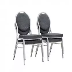 Cette chaise de réception noire et argent dispose d'une assise et d'un dossier rembourrés de mousse. Cette chaise de réception est classée non feu M2.